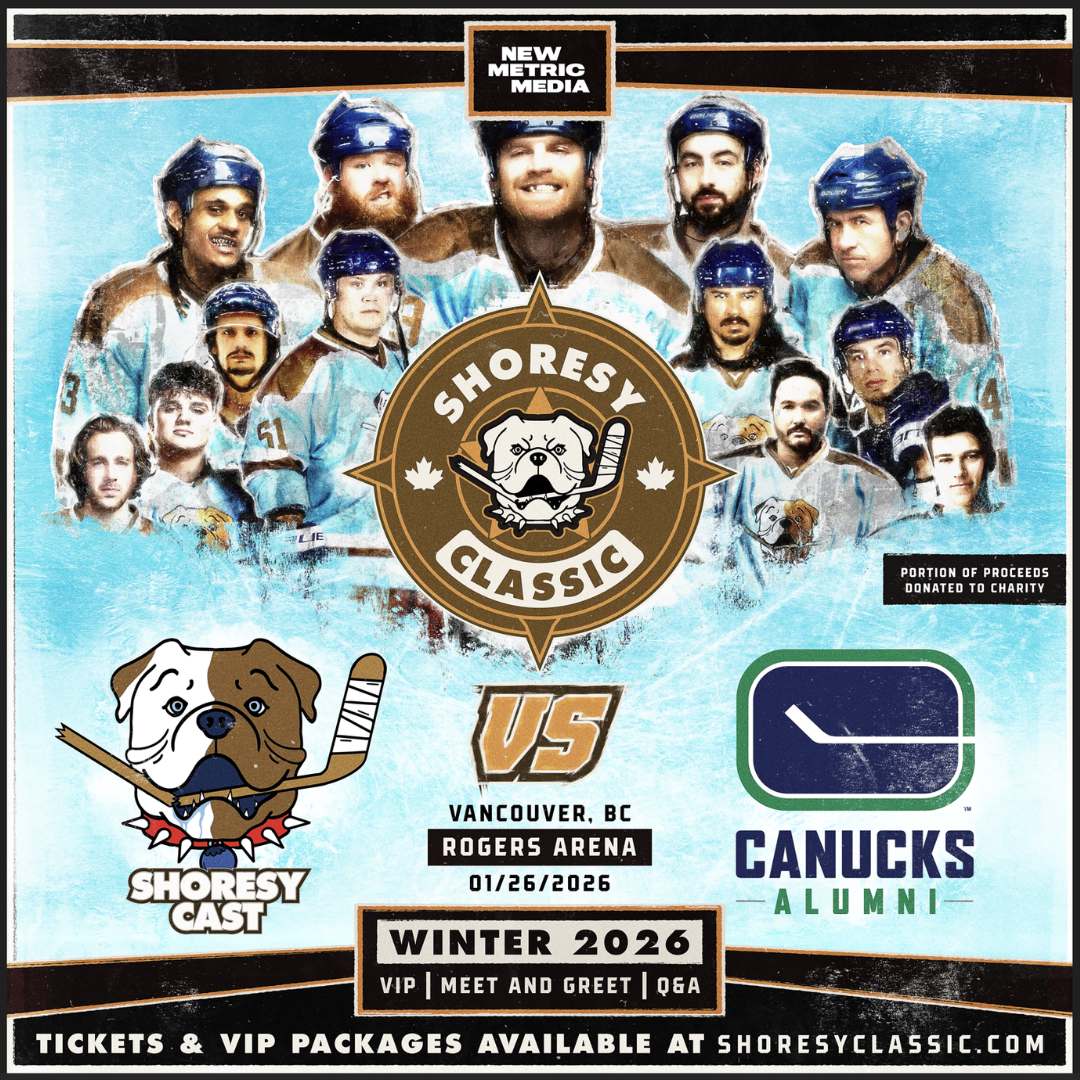 Following a sold-out fall tour, the Shoresy Classic Winter Series — presented by Puppers Golden Lager and produced by New Metric Media in association with Play Fun Games — is taking the hard-hitting humour of Shoresy on the road once again. The Sudbury Blueberry Bulldogs, played by the Shoresy cast, will go head-to-head against the Vancouver Canucks Alumni in a matchup that brings the worlds of comedy and professional hockey together for one electric night.